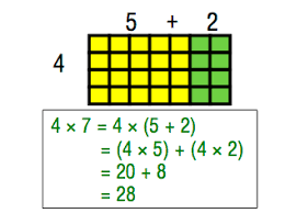 5 x 7            3 x 7          (5 x 7) + (3 x 7) = 35 + 21= 56